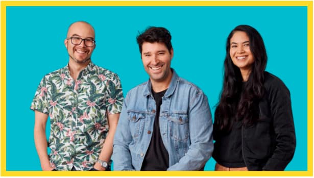 From left to right, Cameron Adams, Cliff Obrecht, Melanie Perkins | Image: Canva